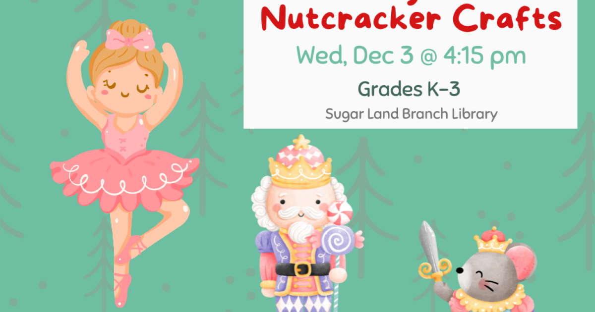 Join us for a festive craft! Kids will make cute ballerinas inspired by the traditional Christmas story of the Nutcracker. This program is for children in grades K-3. Materials made possible by the Friends of the Sugar Land Branch Library.