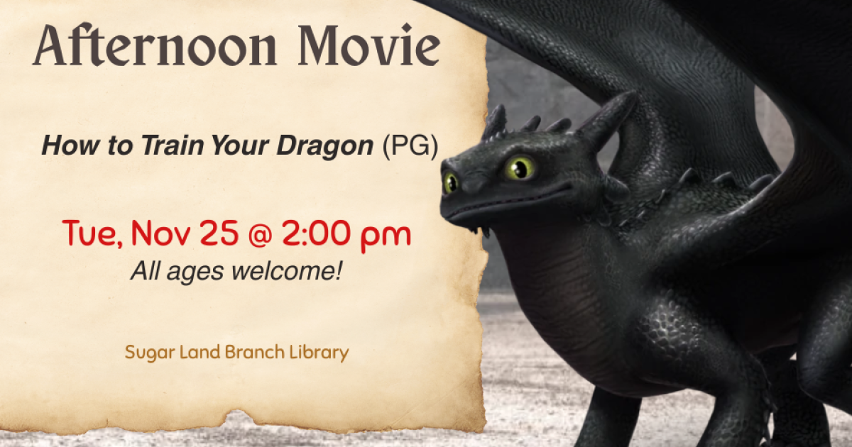 Families with children of all ages are invited to watch the live-action remake of Cressida Cowell's popular fantasy adventure novel. This movie is rated PG.