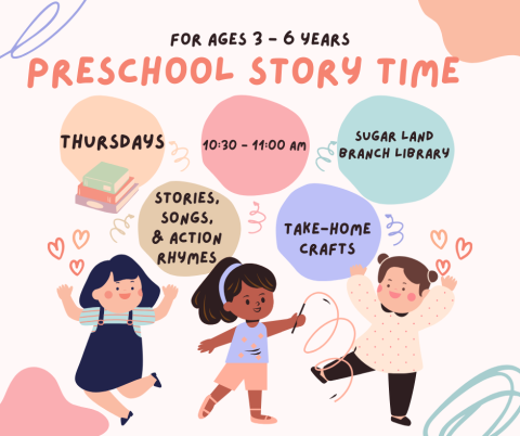 Stories, songs, and action rhymes for families with preschool children aged 3-6 years. Take-home crafts will be available at the end of the program.