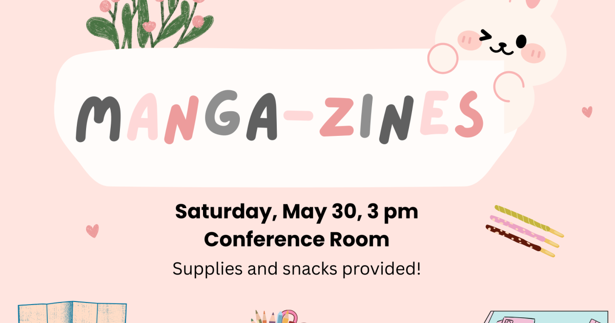 Teens are invited to join us for a special Manga-zines program celebrating Asian American and Pacific Islander Heritage Month! Get inspired by your favorite manga and create your own mini-zine. A mini-zine is a small, handmade booklet where you can share drawings, reviews, fan-fiction or even create your own short comic or mini manga. Meet fellow manga fans, enjoy Asian snacks, and share your creation with others. All materials will be provided, and no prior art or writing experience is needed.